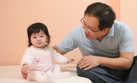 在此之前,寶寶一聽到別人說話的聲音,就會迫不及待的跟著發出聲音,但是到了7、8個月時就大不同了,有人說話時,寶寶常是安安靜靜的,等對方停止說話時才出聲回應。這顯示,寶寶學會了第一個語言規則-「別人說話時不要講話,因為很快就會輪到我了!」。